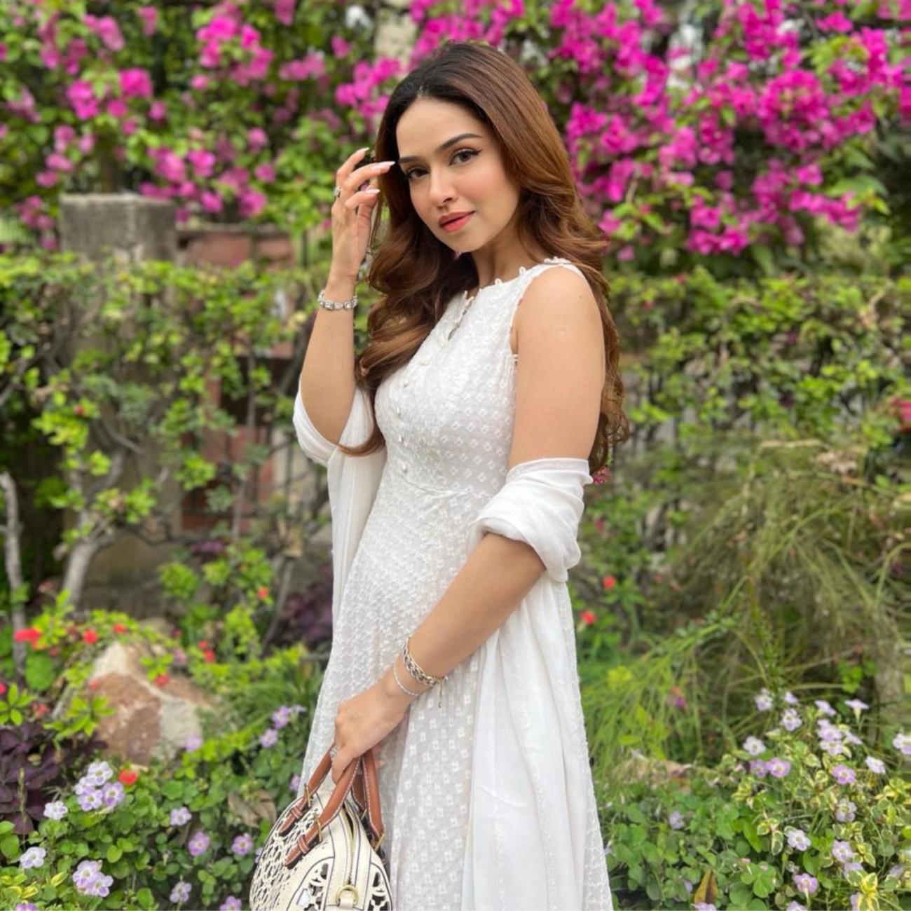 Bias-cut Anarkali crafted from two types of self-detailed Chanderi fabric with a generous 4-meter ghera. Features cotton lining, delicate loop detailing on the neckline and body. Paired with a breezy cotton palazzo and a soft georgette dupatta—effortlessly elegant and breathable.